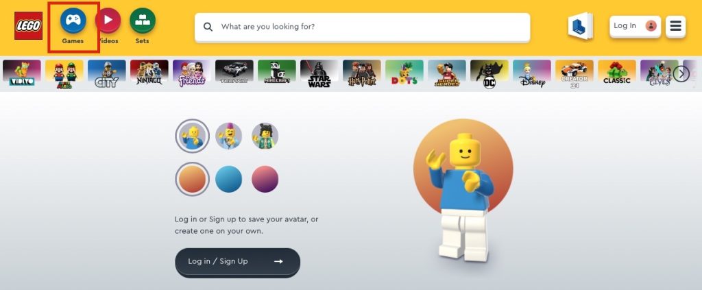 (1) まずはLEGO公式サイトにアクセスし、ロゴの右側にある「Games」をクリックします